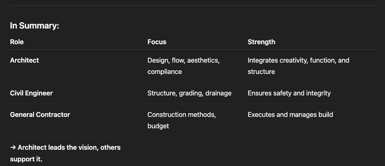 ➡️ An Architect unites both form and function — creating spaces that work and inspire.